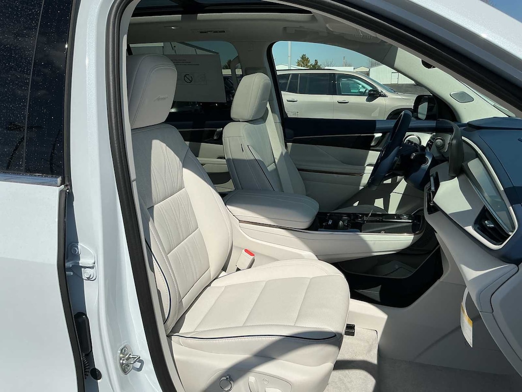 SUPER CRUISE PACKAGE includes (UKL) Super Cruise, (UKZ) Enhanced Automatic Parking Assist and (ULM) Driver ATTENTION ASSIST®, CHASSIS, ALL-WHEEL DRIVE SYSTEM WITH DRIVER SELECT, LPO, ALL-WEATHER PACKAGE includes (VAV) first and second row All-weather floor mats, LPO and (RIB) third row all-weather floor liner, LPO and (VLI) all-weather cargo mat, ENGINE, 2.5L TURBO DOHC SIDI WITH VARIABLE VALVE TIMING (VVT) (328 hp [244 kW] @ 5500 rpm, 326 lb-ft of torque [442 N-m] @ 3500 rpm) (STD), TRANSMISSION, 8-SPEED AUTOMATIC, ELECTRONICALLY CONTROLLED (STD). Buick Avenir with Iridescent White Tricoat exterior and Cool Gray seats Slate Blue interior accents interior features a 4 Cylinder Engine with 328 HP at 5500 RPM*.