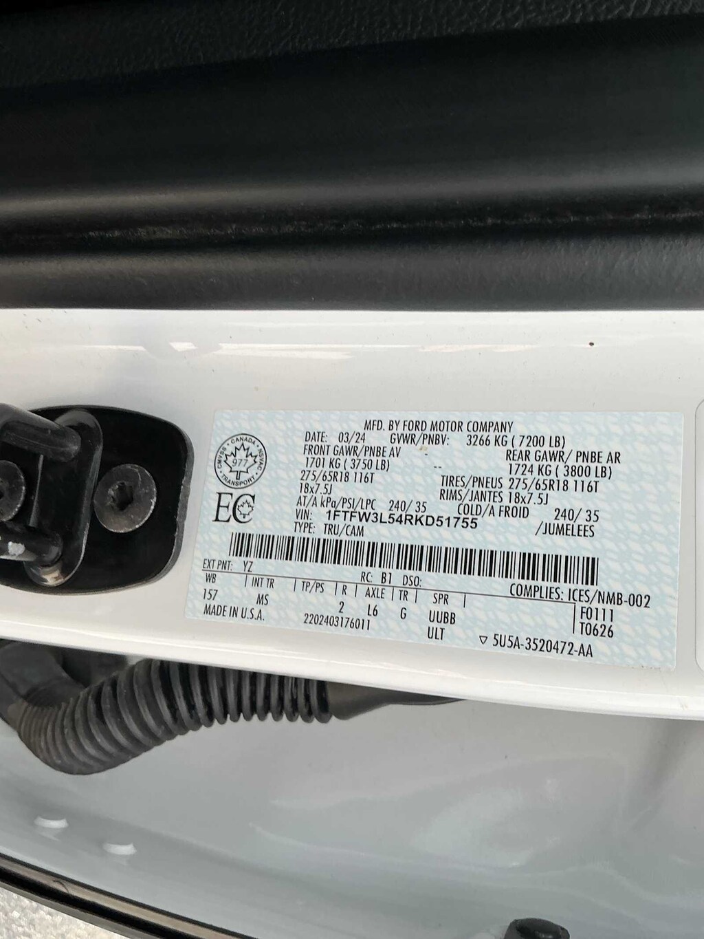 - 1FTFW3L54RKD51755